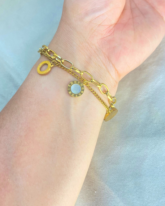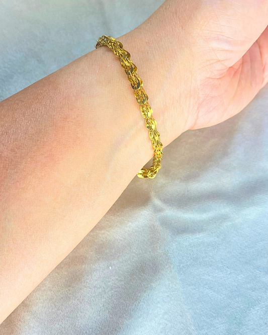 سوار فاخر بسلسلة بيزنطية من فولاذ التيتانيوم المطلي بالذهب عيار 18 قيراطًا. مقاوم للتآكل، متين، ومثالي لأي مناسبة.