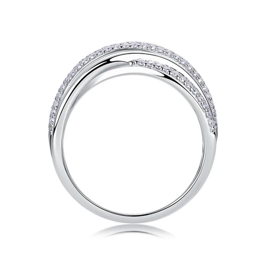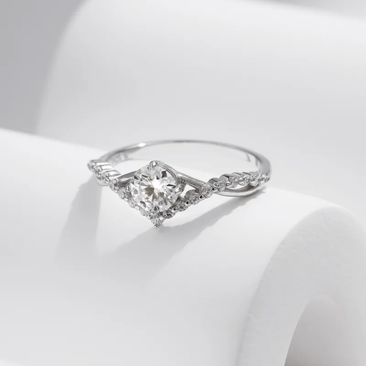 خاتم هندسي من حجر الموزانيت 0.66 قيراط - فضة إسترليني عيار 925، معتمد من GRA، قطع لامع