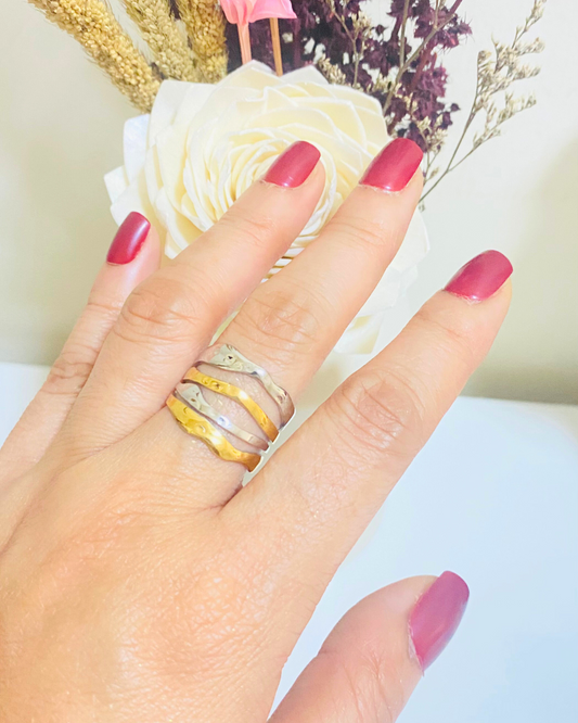 خاتم غير منتظم ثنائي اللون قابل للتعديل - مطلي بالذهب عيار 18 قيراطًا من الفولاذ المقاوم للصدأ 316L