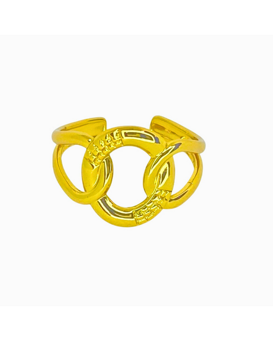 خاتم قابل للتعديل بثلاث حلقات - مطلي بالذهب عيار 18 قيراطًا من الفولاذ المقاوم للصدأ 316L