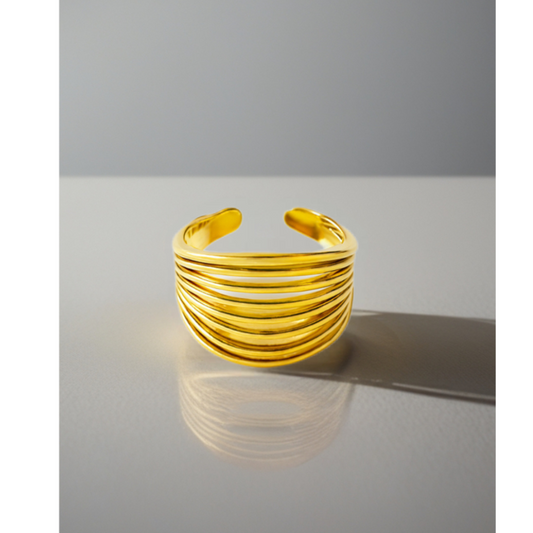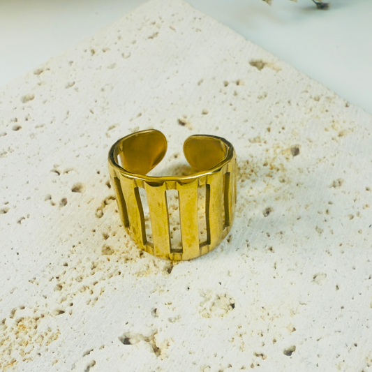 French Chic Matte Grooved Dome Adjustable Ring – 18K Gold Plated 316L Stainless Steel