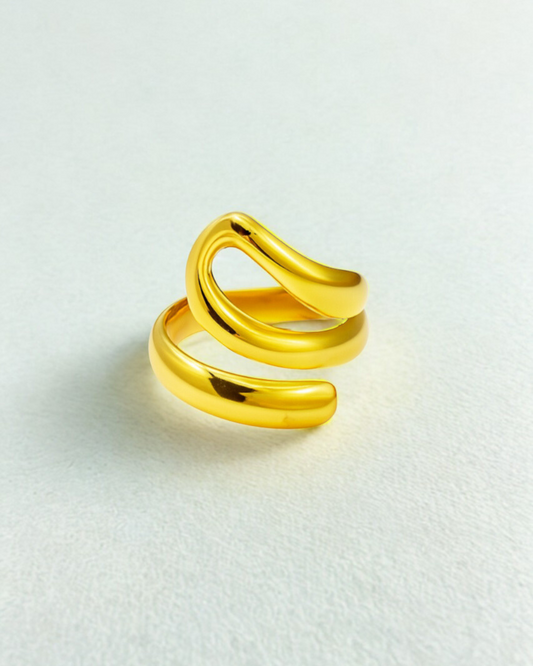 خاتم حلزوني سميك قابل للتعديل - مطلي بالذهب عيار 18 قيراطًا من الفولاذ المقاوم للصدأ 316L