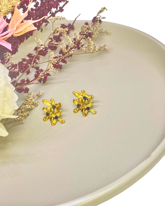 Chic Triple Flower Pearl Inlay Stud Earrings β 18K Gold Plated 316L Stainless Steel